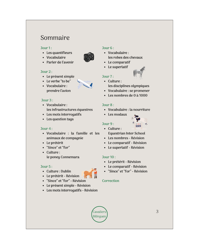 Ce cahier a été construit pour rendre les révisions ludiques et agréables en les associant à la passion des chevaux de vos enfants. L’objectif, c’est que votre enfant apprenne plein de choses sans avoir l’impression de travailler.